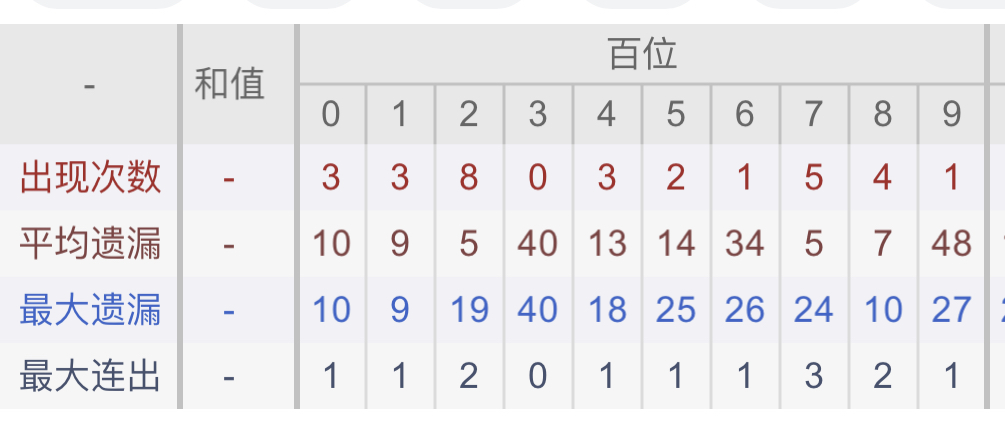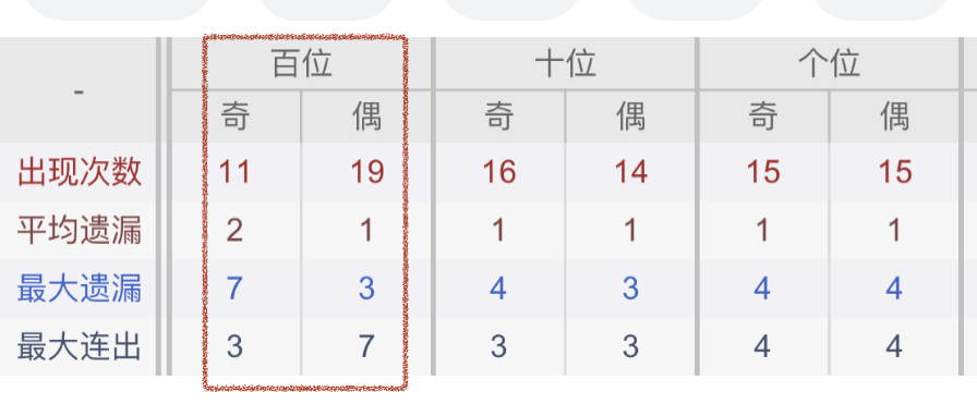 从近30期数据我们可以看出百位1是热码,这个冷热码数据我们结合之后的分析再利用它
