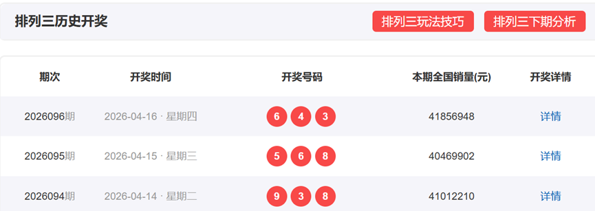 体彩排列3上一期,开奖号码为643,形态为组六,奇偶比为1:2,012路数值表现为010,和值13,和尾3,跨度3。