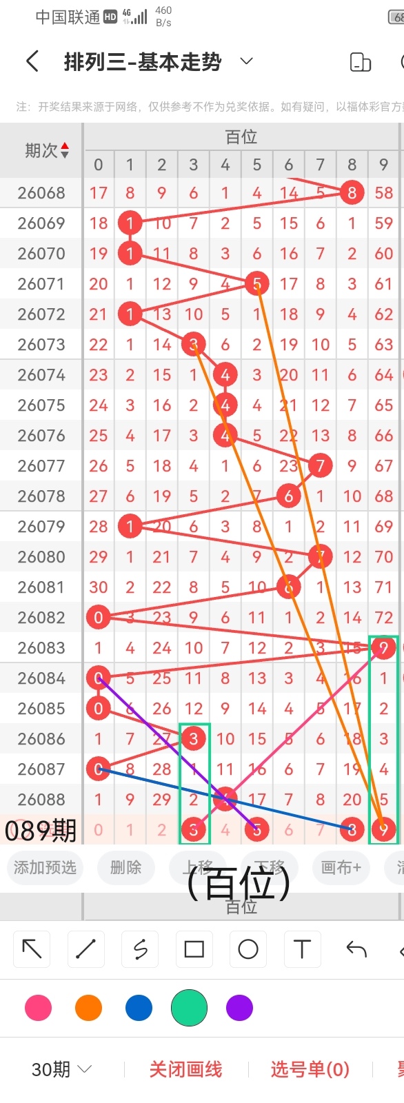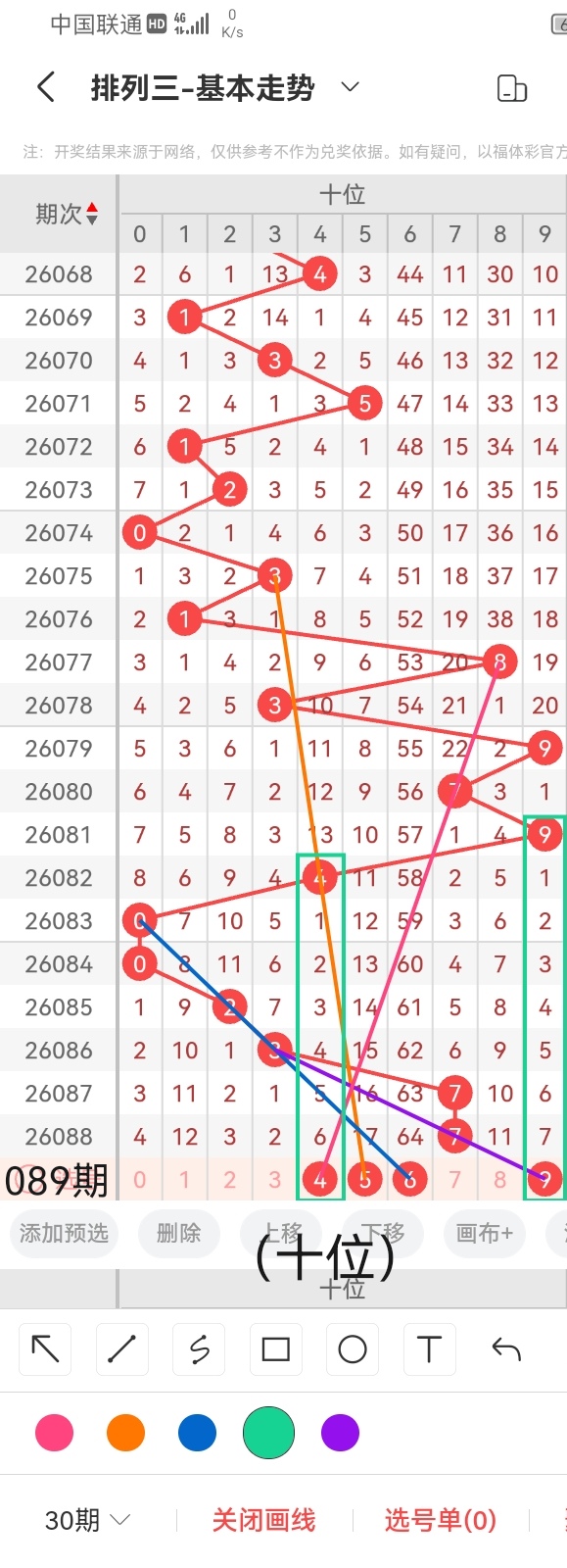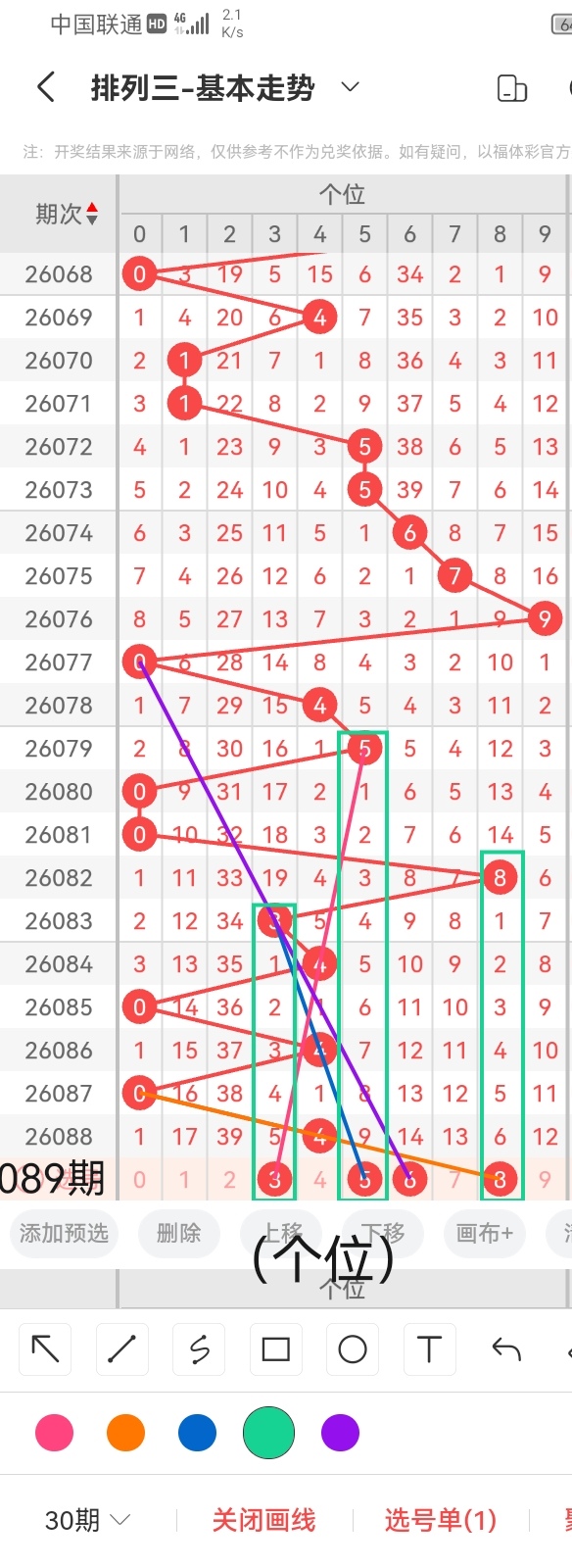 通过以上对上期的简单回顾,下面进入体彩排列三第2026089期(下面简称本期)的选号分析: