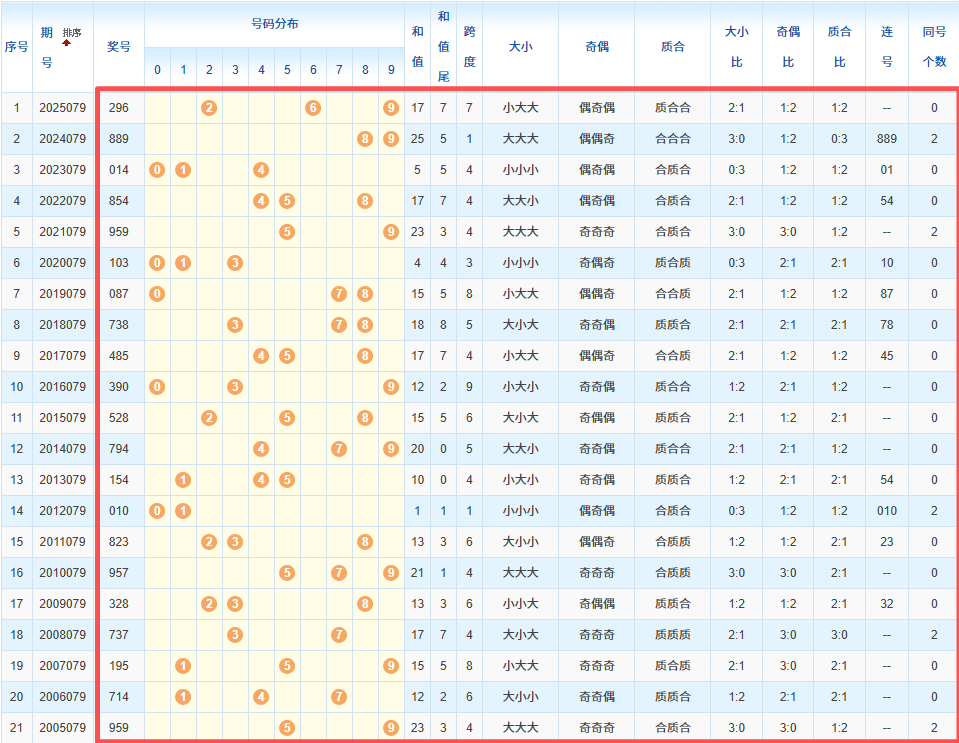 1、统计往年同期开奖号码