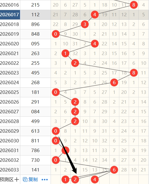 上期012路比为:1:0:0;近5期0路号码开出次数情况为:11012;近5期1路号码开出次数情况为:22120;近5期2路号码开出次数情况为:00201;
