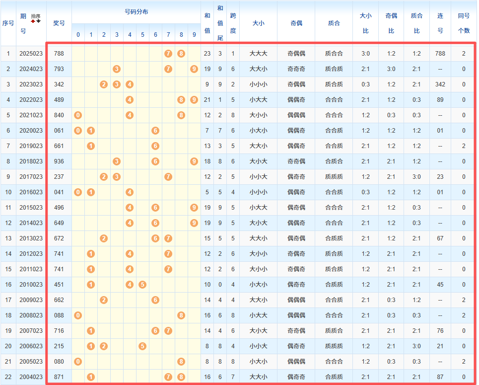 1、统计往年同期开奖号码