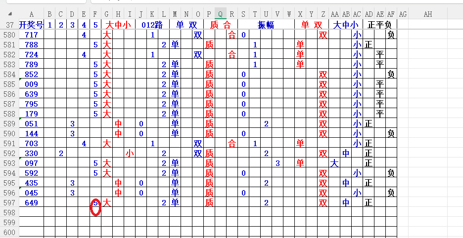 如上图2,大中小分析来看,中小数尾3456尾,可以考虑定345尾。