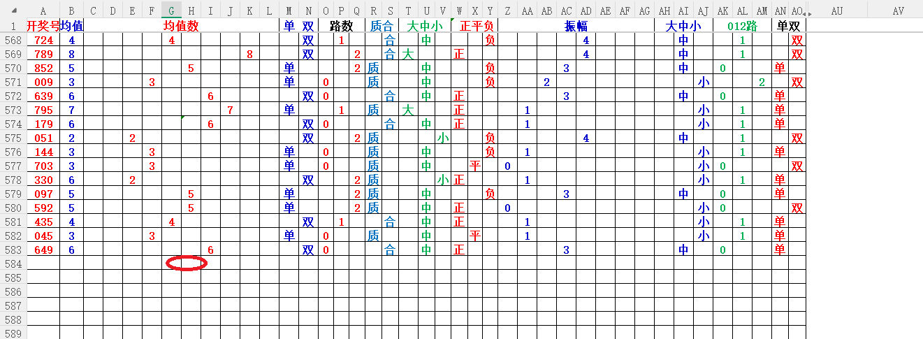 如上图1,大中小分析,均值小中大数比较好,也就是 3456 均值最好,重点:45。