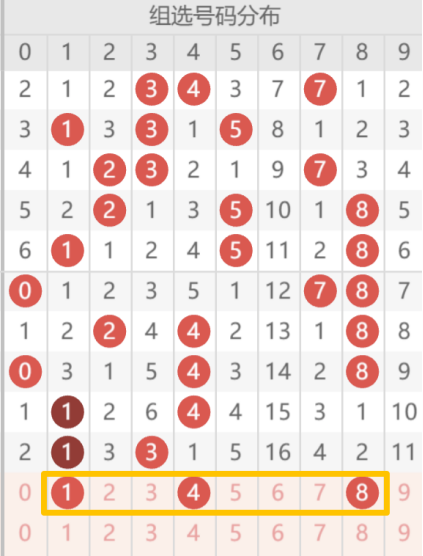 千位:0、1、2、3、4、5、8