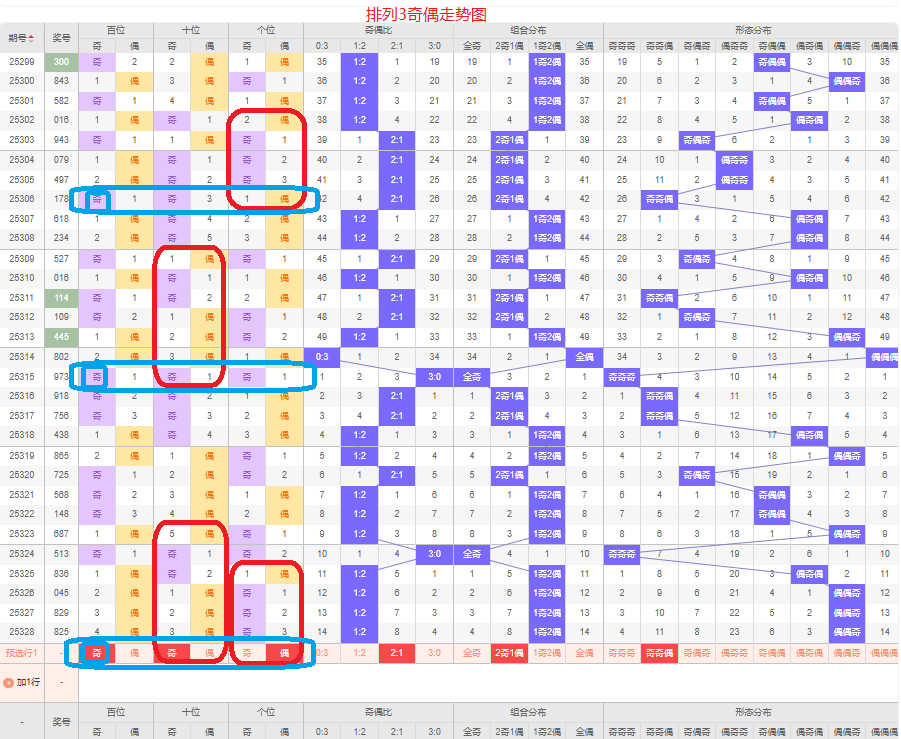 上一期的奇偶比为1:2,两偶的号码组合,从近五期的奇偶数出现情况看,奇数出7次,偶数出现8次,奇数偶数号码出现较平均,本期要侧重两奇的号码组合,侧重奇奇偶或偶奇偶的号码组合,根据奇偶组合形态可做五码定位13579/13579/02468或02468/13579/02468