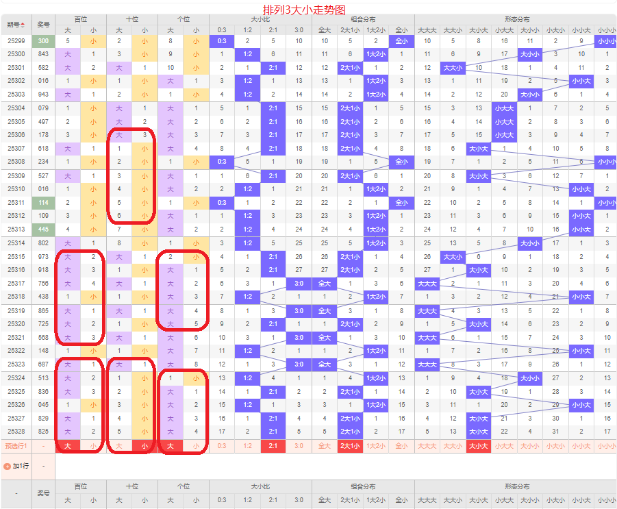 上一期大小比为2:1,两大的号码组合,近五期大号出8次,小号出7次,大小号码出现较平均,上一期是两大的号码组合,本期侧重两大的号码组合,百位侧重大号码,十位侧重小号码,个位侧重大号码,侧重大小大或者小大大的号码组合,根据大小形态五码定位56789/01234/56789或者01234/56789/56789