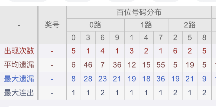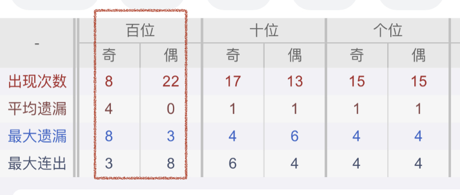从近30期数据我们可以看出百位1是热码,这个冷热码数据我们结合之后的分析再利用它