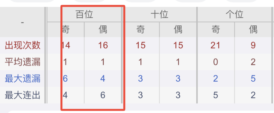 从近30期数据我们可以看出百位26是热码,这个冷热码数据我们结合之后的分析再利用它