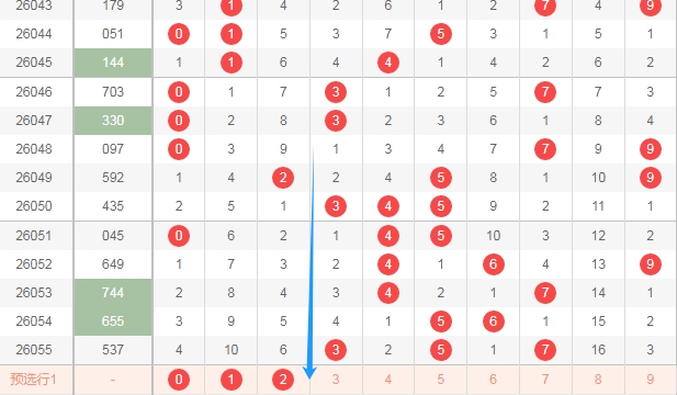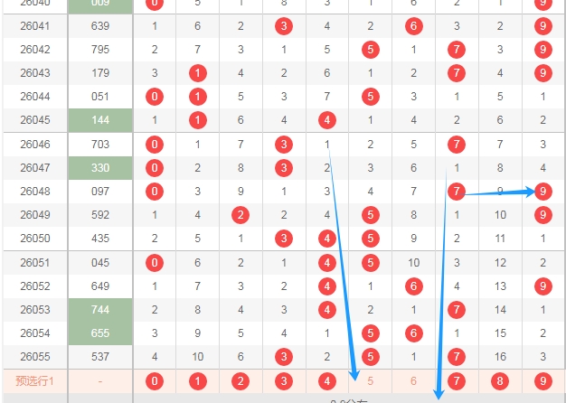 上图是体彩排列三开奖号码走势分布图,我在上面走势图中标注出来的数字128是目前为止遗漏周期大的数字,上面走势图中标注出来的蓝色小箭头表示上期号码的遗漏周期,可以发现上期出现的号码遗漏周期都小,那么本期出遗漏周期大的数字128机会就有了。