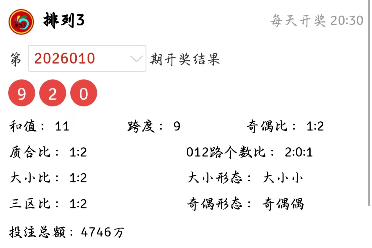 排列3第2026011期开奖号码个人分析,本期考虑关注大号奇数,金胆3号