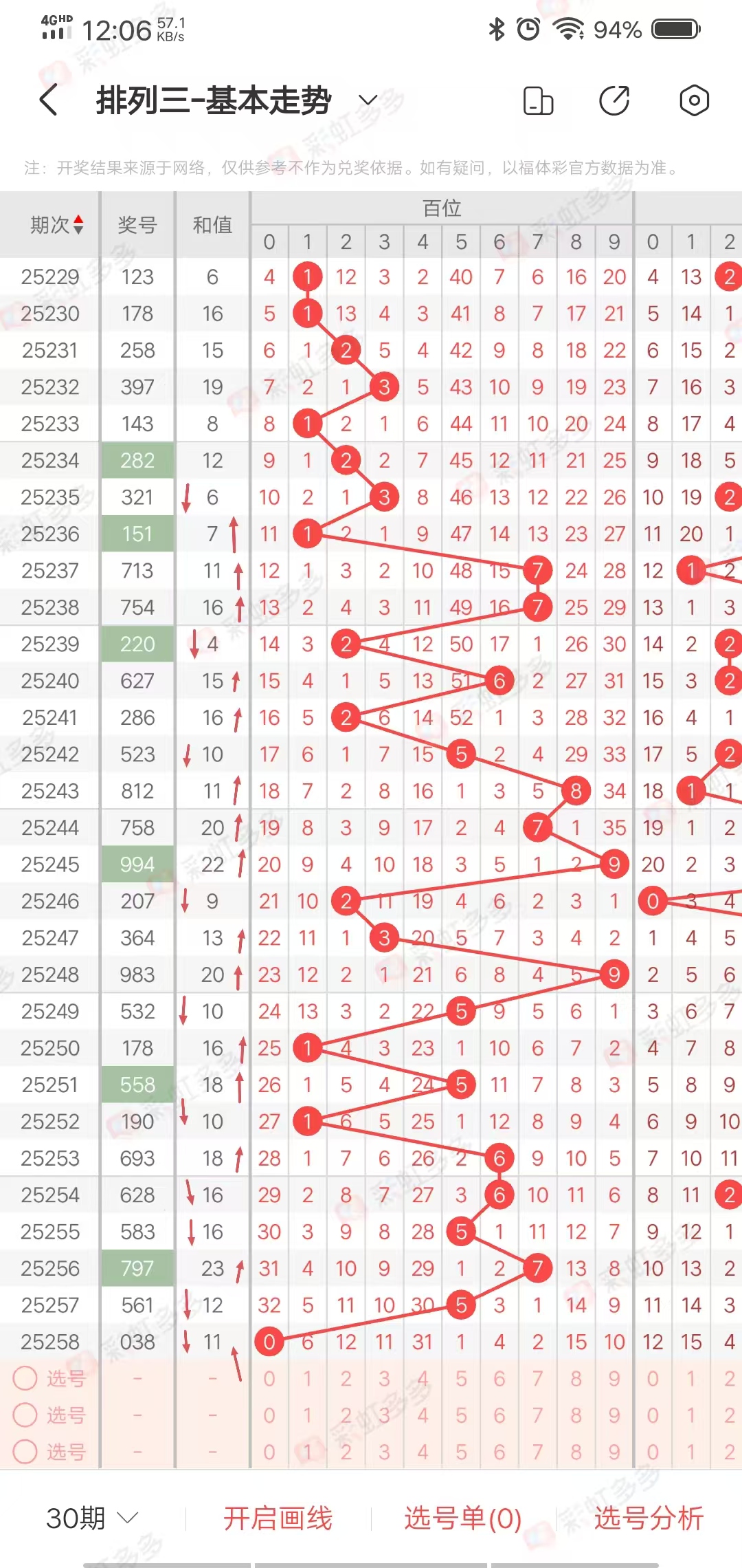 杀神排列三25259期走势分析:本期重点关注和值上升