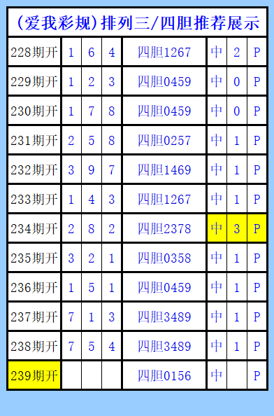 排列三第239期图文(爱我彩规),四胆推荐展示