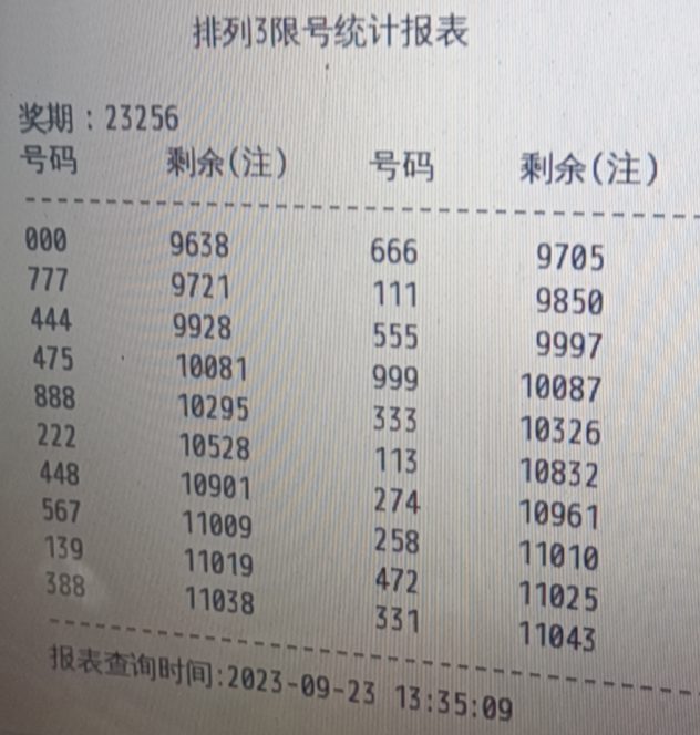 一、2023256期 排列3限号统计报表