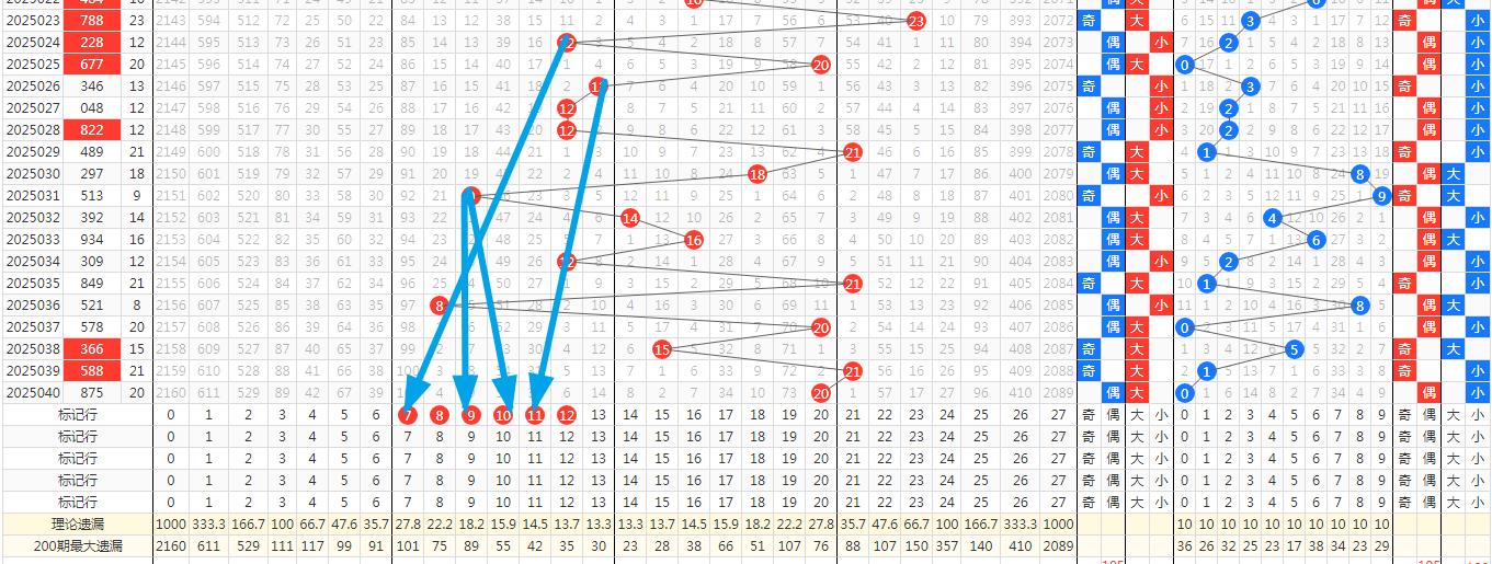 和值预判分析: • 和值的走势对排列3的预测同样具有重要意义。在第038期历史同期开奖中,奖号和值共开出11个,波动区间在7-20之间。具体来看,0-9区段和值开出3次,在10-17区段出现11次,在18-27区段开出4次。根据当前走势,预计和值将走小,主要集中在0-9区段,推荐关注和值7--8