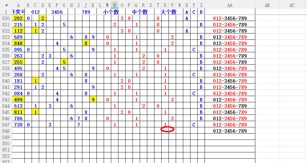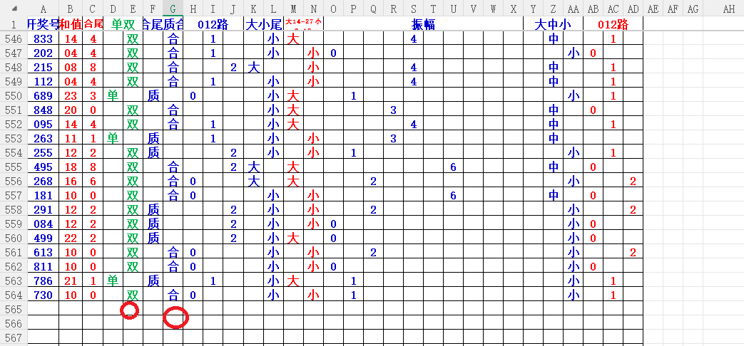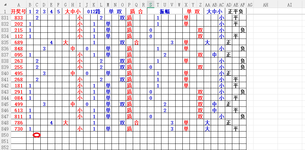 如上图2,012路分析,01路尾走比较好,关注34567尾;