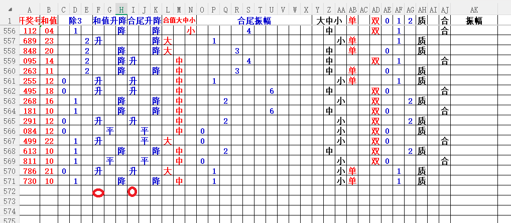如上图3,和值升平降分析,和值降的概率大,大于10和值。