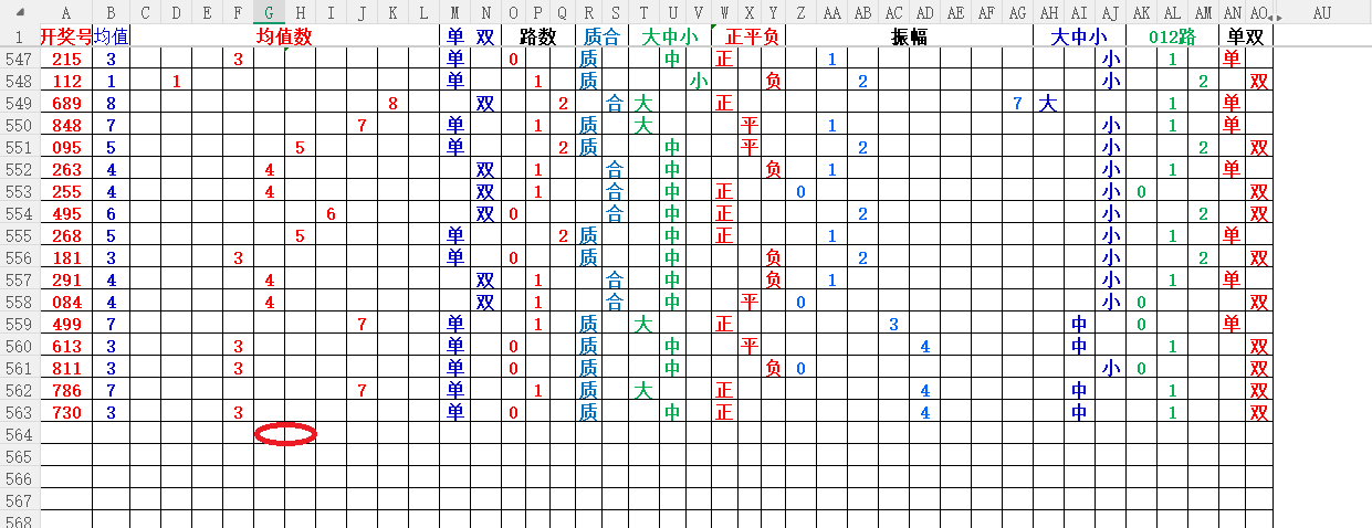 如上图1,大中小分析,均值小中大数比较好,也就是 3456 均值最好,重点:45。