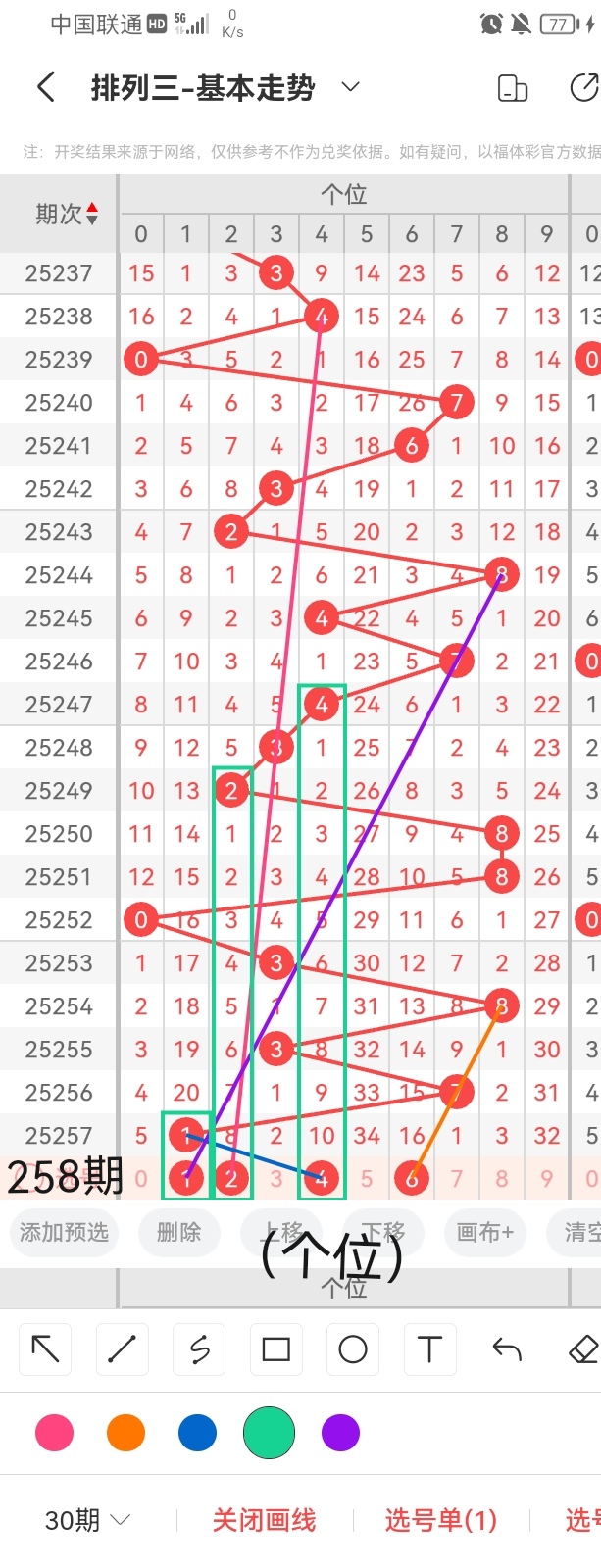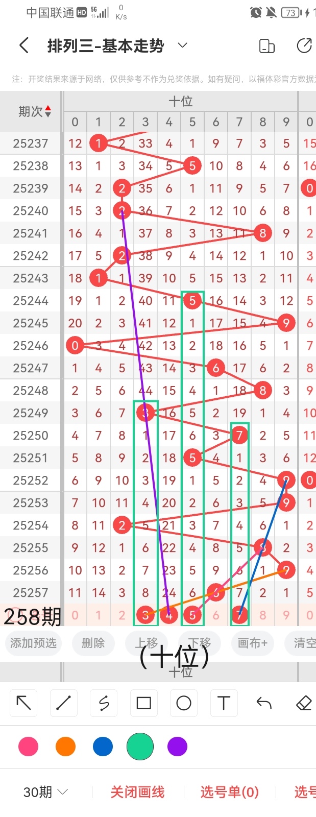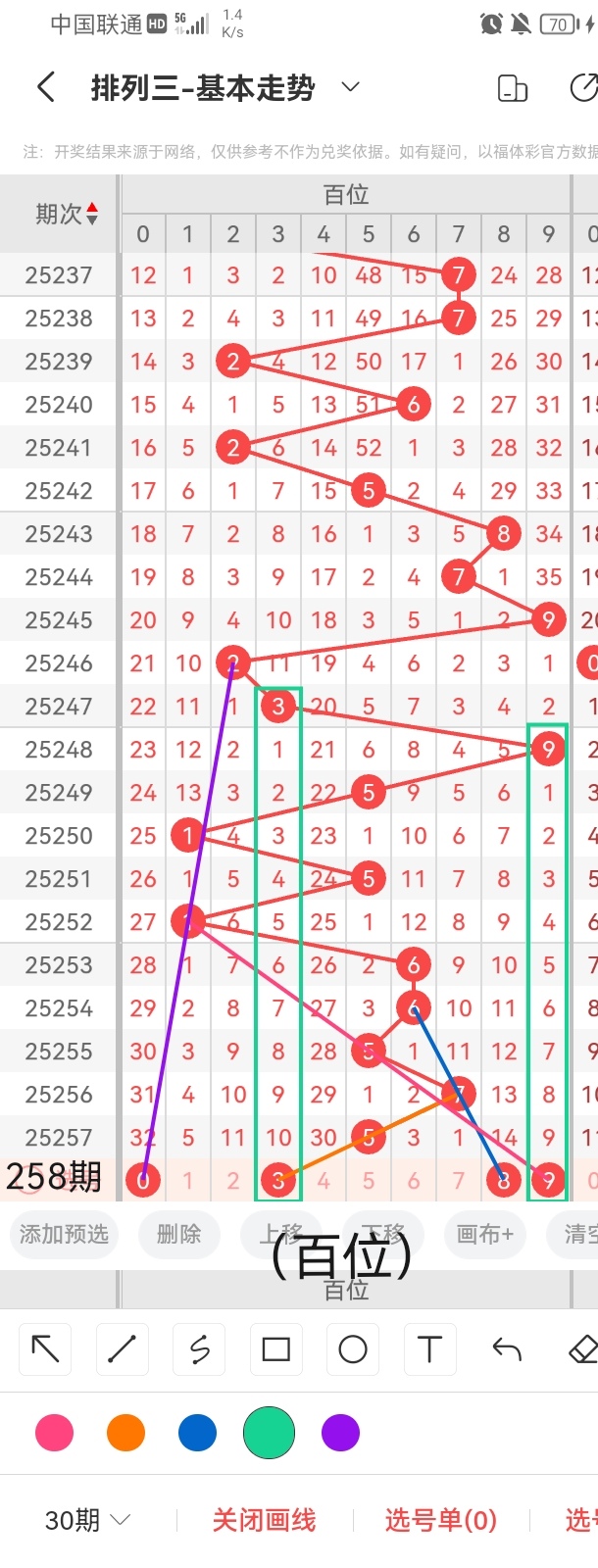通过以上对上期的简单回顾,下面进入体彩排列三第2025258期(下面简称本期)的选号分析: