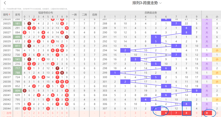 龙本龙-排列3-第045期定位分析,跨度看好大数号码