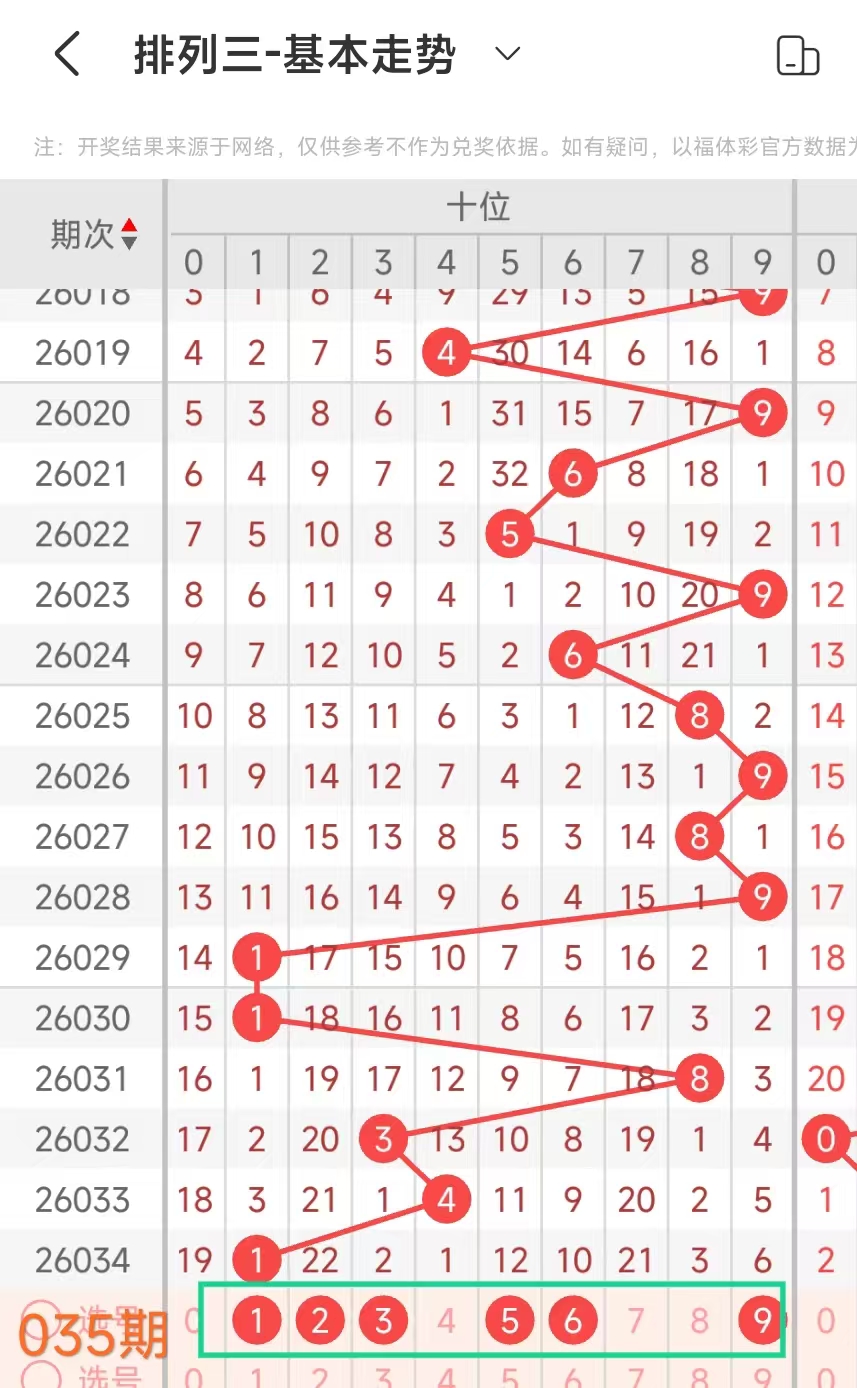金莱排列3第035期:本期和值看双数