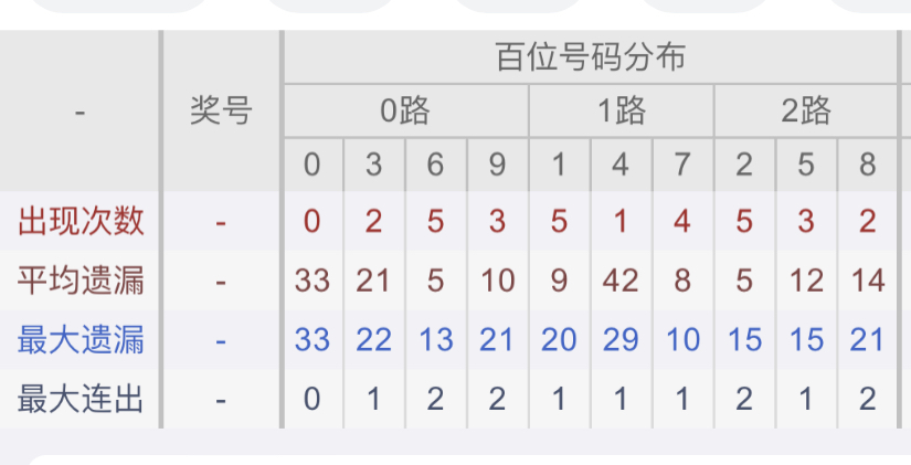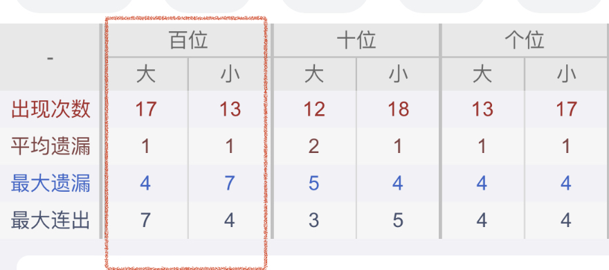 从近30期数据我们可以看出百位12是热码,这个冷热码数据我们结合之后的分析再利用它