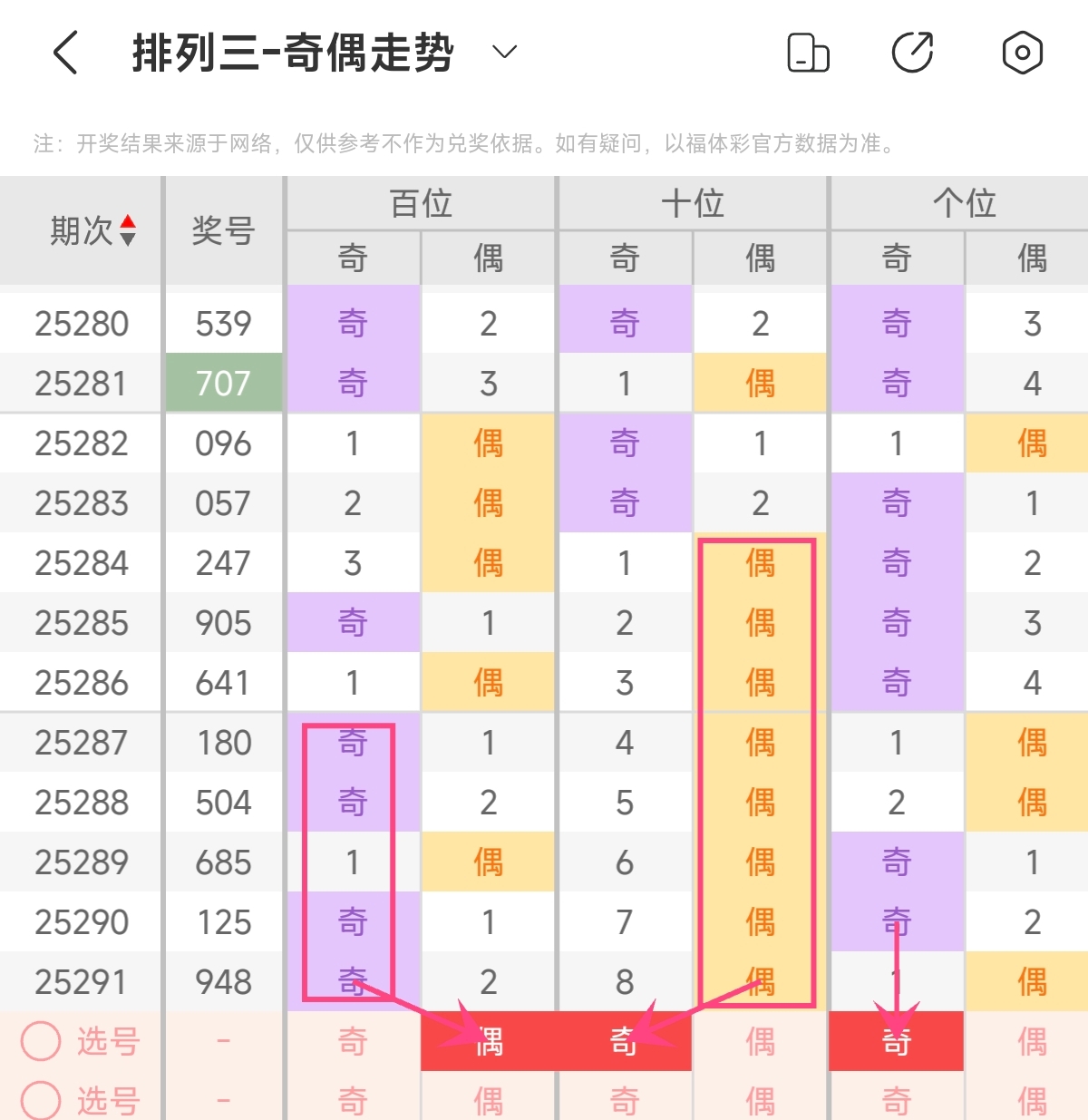 上期奇偶形态为奇偶偶,奇偶比为1:2,偶数号码占优。根据近期奇偶形态变化来看,近期奇偶形态开出多为偶数号码占优形态,本期需注意奇数号码的反弹。预计本期会回补奇数号码占优组合。预计本期奇偶形态可关注奇偶比2:1,奇数占优组合 。本期奇偶形态可重点关注:偶奇奇。
