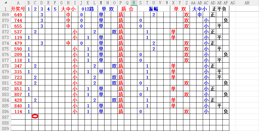 如上图2,大中小分析来看,中小数尾3456尾,可以考虑定345尾。