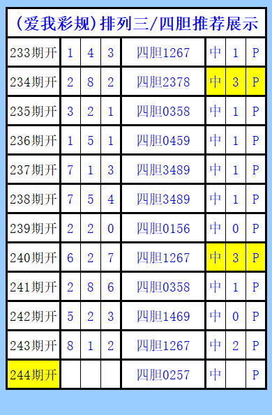 排列三第244期图文(爱我彩规),四胆推荐展示