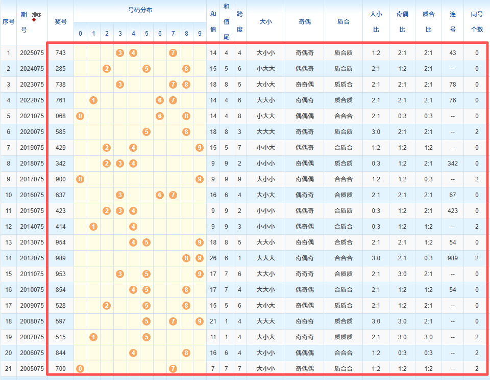 1、统计往年同期开奖号码