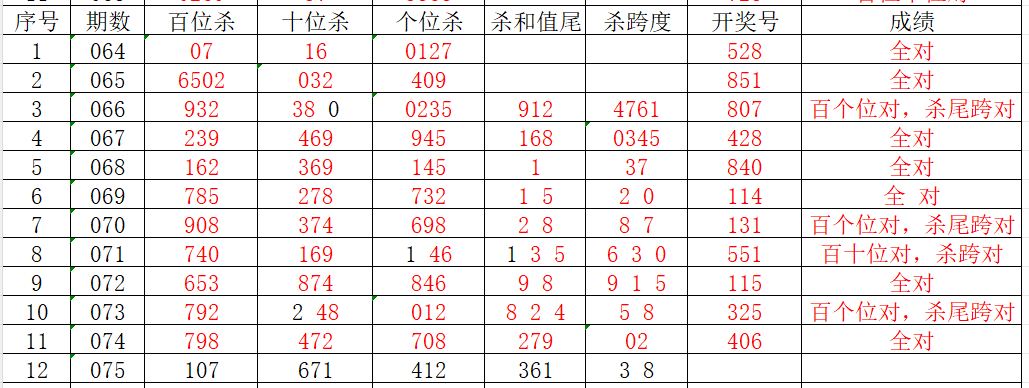 金莱排列三第075期:上期15注单式命中406直溜溜