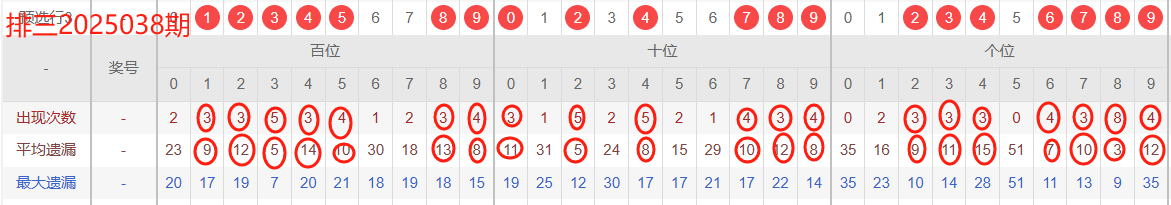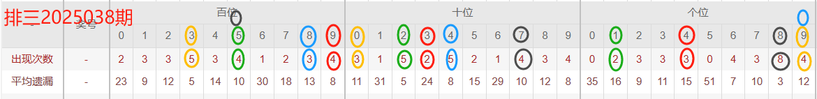 体彩排三 2025038期分析分享(小连中,上期中七码)