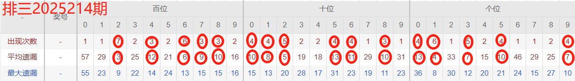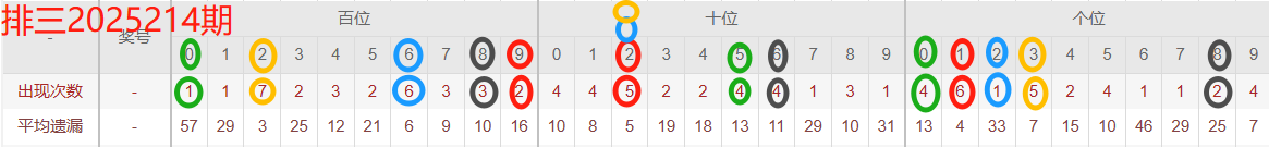 体彩排三2025214期分析分享(上期中5,6,7码及精选组)