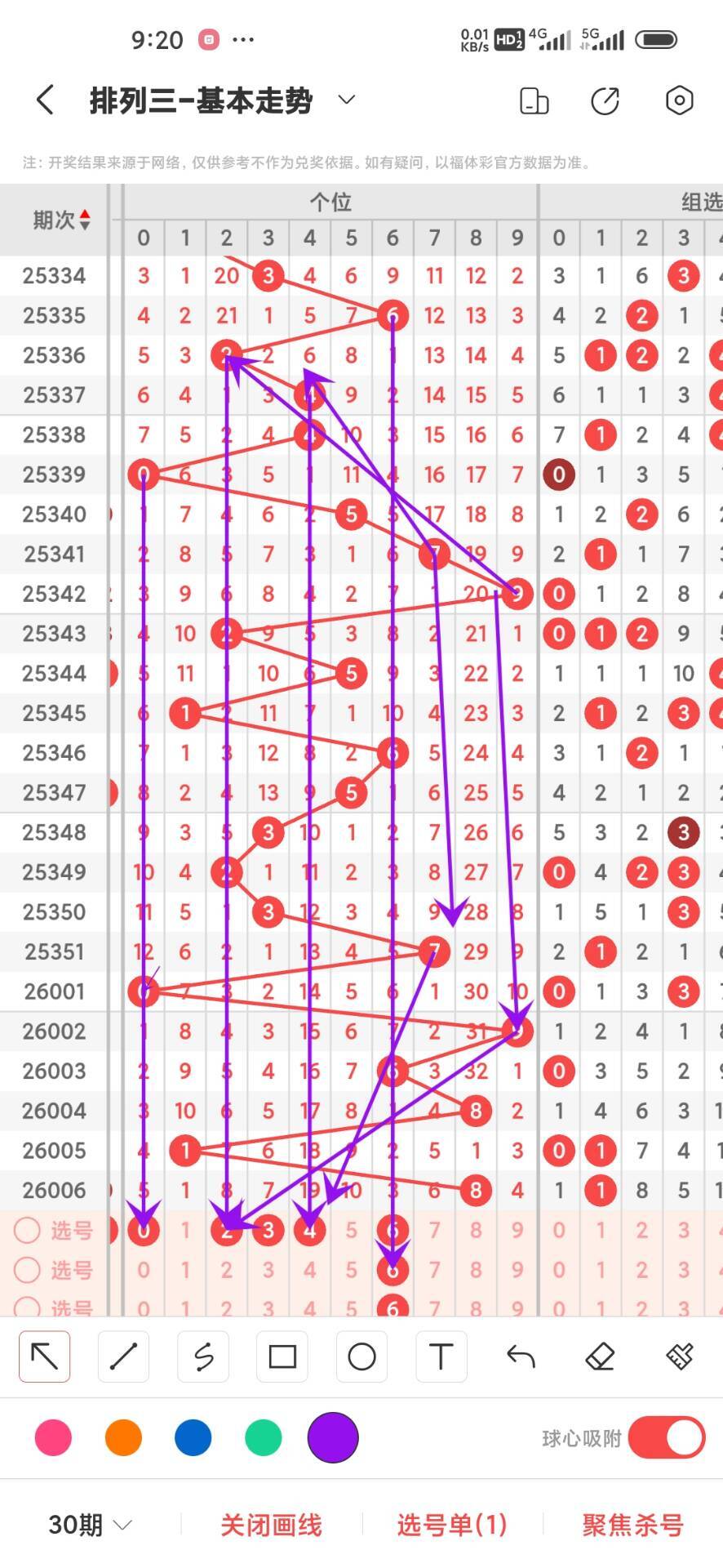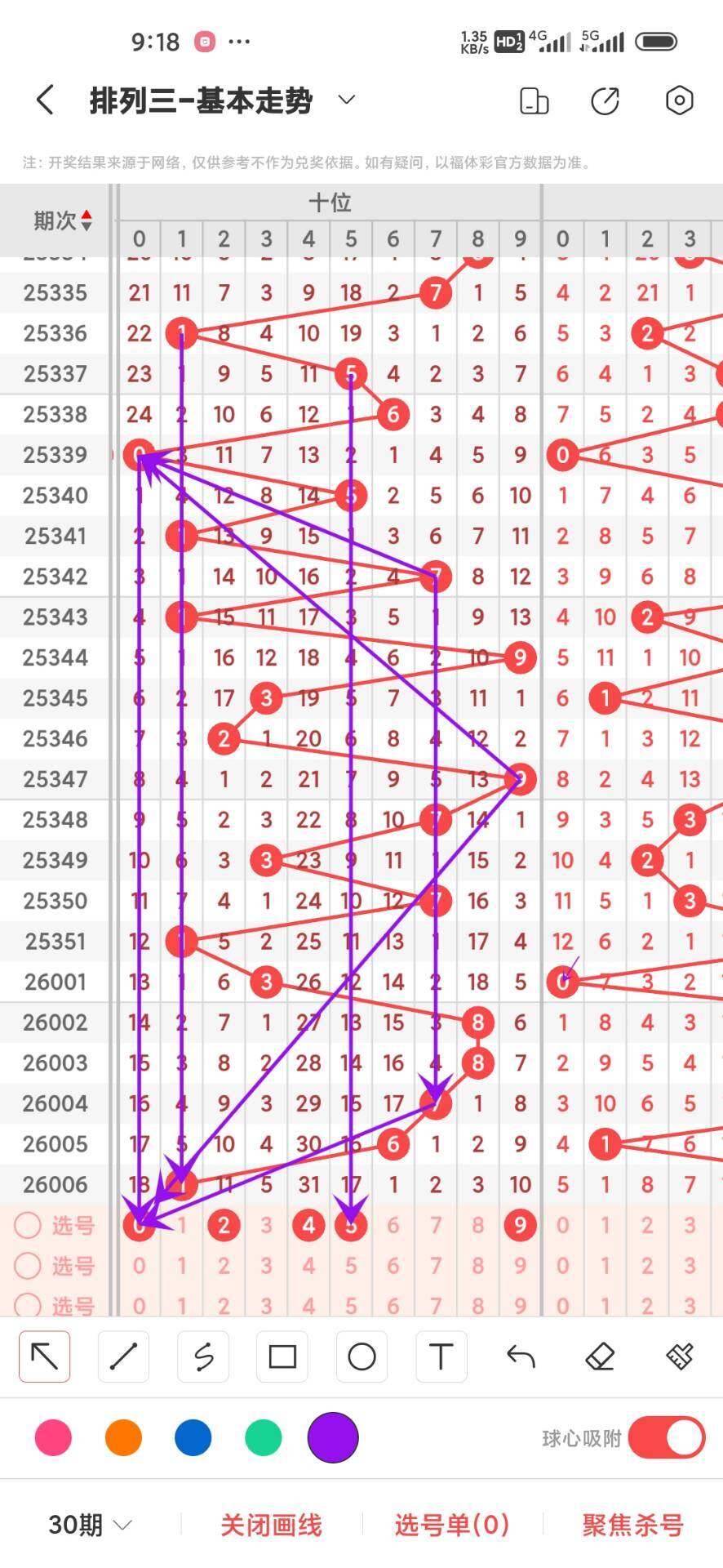 2026007期上期十位开出奇数1,我们通过走势图来看300期内,012路中平均遗漏的数据,0路号码的平均遗漏总数是44次,0369分别在300期内平均遗漏分别是12,11,12,9,这几路号码相差不大,我们再来看1路号码平均遗漏总数是25,147号码分别遗漏是,8,11,6,这三者之间7平均遗漏最小6次,再回过头来看2路号最大遗漏总数是28次,258号码分别遗漏是8,11,9次,这三个数之间差别不大,在来看十位上奇偶下号,目前奇数出现的次数是158次,偶数目前出现142次,目前两者之间差别不大,十位目前小号开始回补,今天继续防守冷号和小号,通过上面的走势分析我们可以看出目前小号开始回补,02459号码走势就有点冷淡,今天十位我们重点关注02458,具体看下面走势图