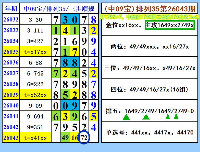 (中09宝)视频经典回顾,排列35第043期,中直码1792排三直选179 2026-02-13 10:14:11 排列35第043期,(中09宝)视频经典回顾 开奖后再能回顾,原视频17点前已发会员区 中直码1792,排三直选179,主攻1xx2x 排列35第043期,(中09宝)视频三步顺规