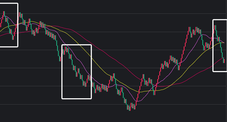 可以看到一些规律,在白框中,如果一致,那么接下来这些跨度也会出。