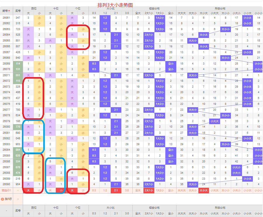 上一期012路个数比为1:1:1,是全路的号码组合,上期没有断路的号码,本期的号码以两路的组六组合号码为主,本期1路的号码可能会出现,本期应该会有0路的号码,本期以01的组六组合号码为主,防12路和02路的组合,侧重01路的号码组合。