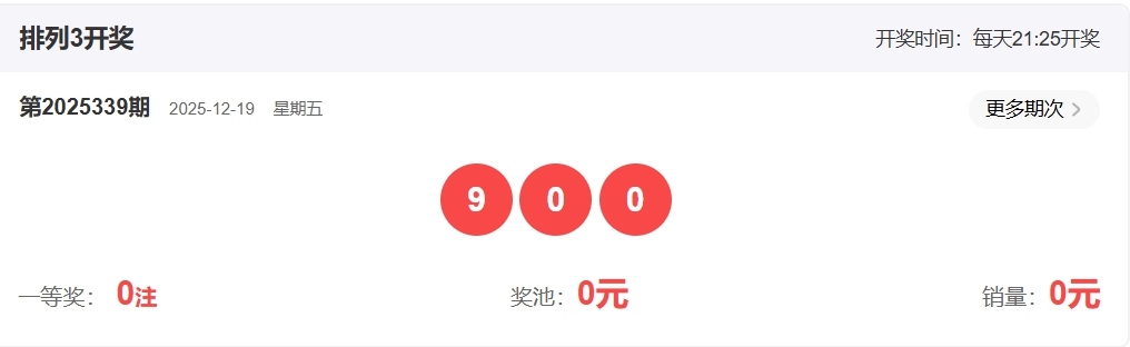 排列三第2025339期开奖回顾:开奖号码:900 形态:组三
