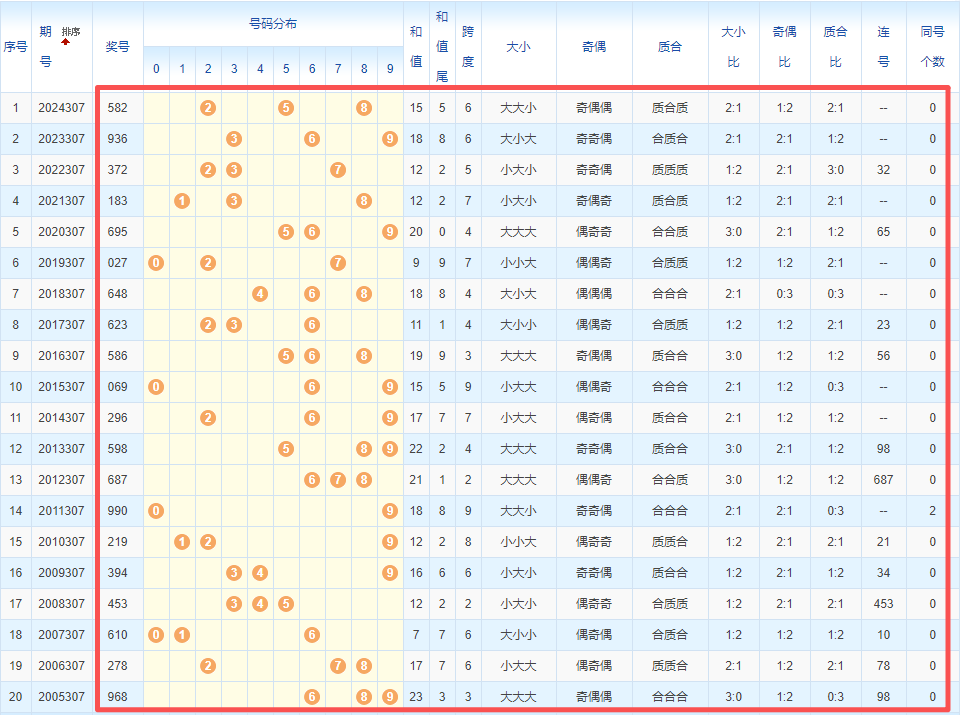 1、统计往年同期开奖号码