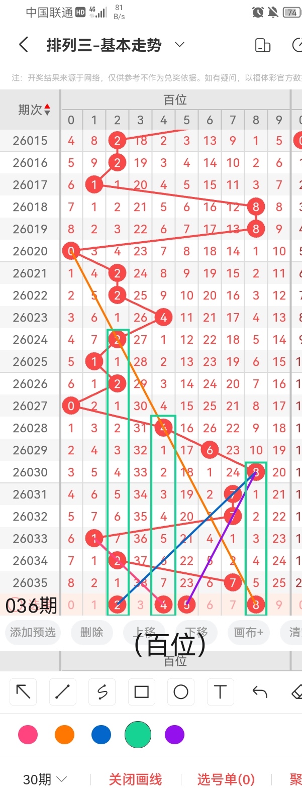 通过以上对上期的简单回顾,下面进入体彩排列三第2026036期(下面简称本期)的选号分析: