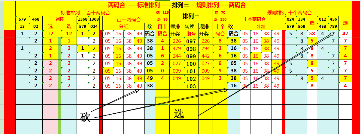 百十两码合用“标准排列”分析;