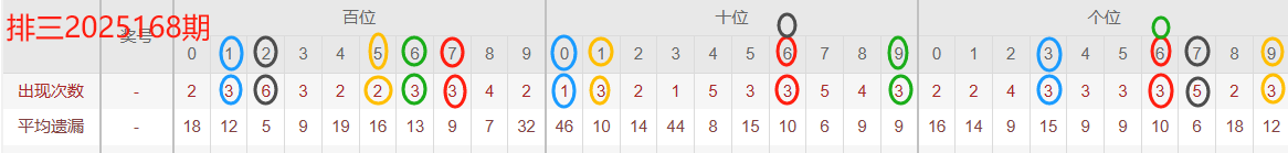 2025167期开奖号码267,我们可以看出近30期百位2出现6次,十位6出现3次,个位7出现5次。