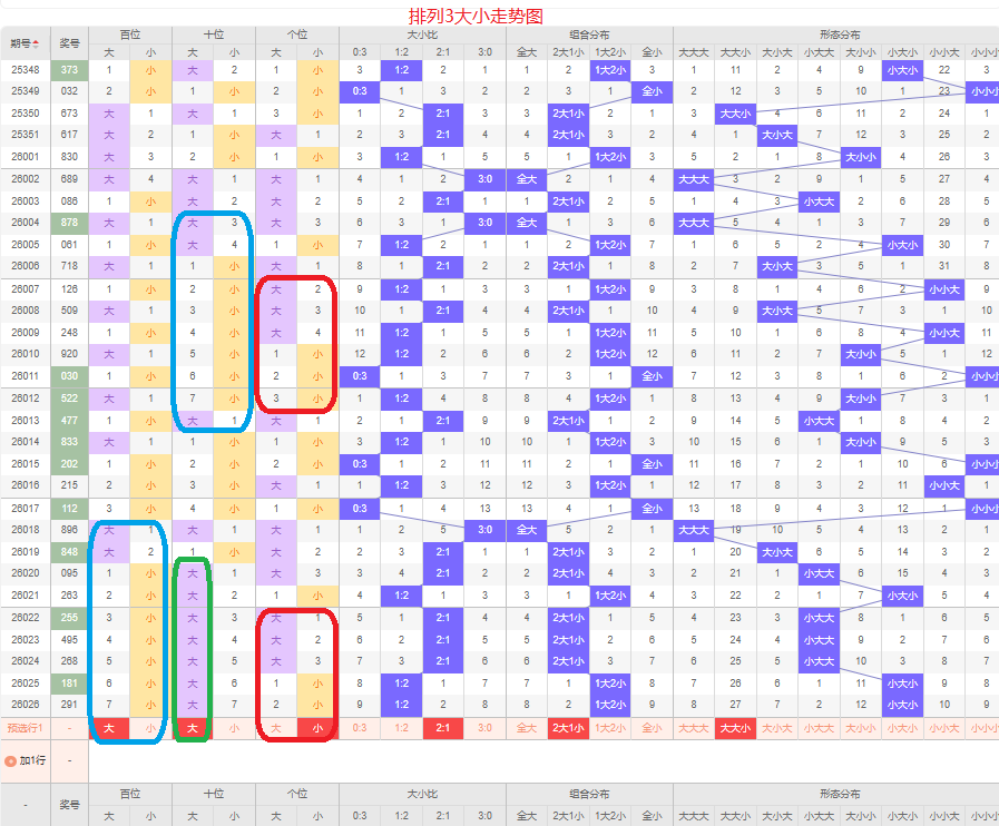 百位近七期是小号码,侧重奇数的号码,侧重大号码,侧重1路和2路的号码,侧重号码34569。