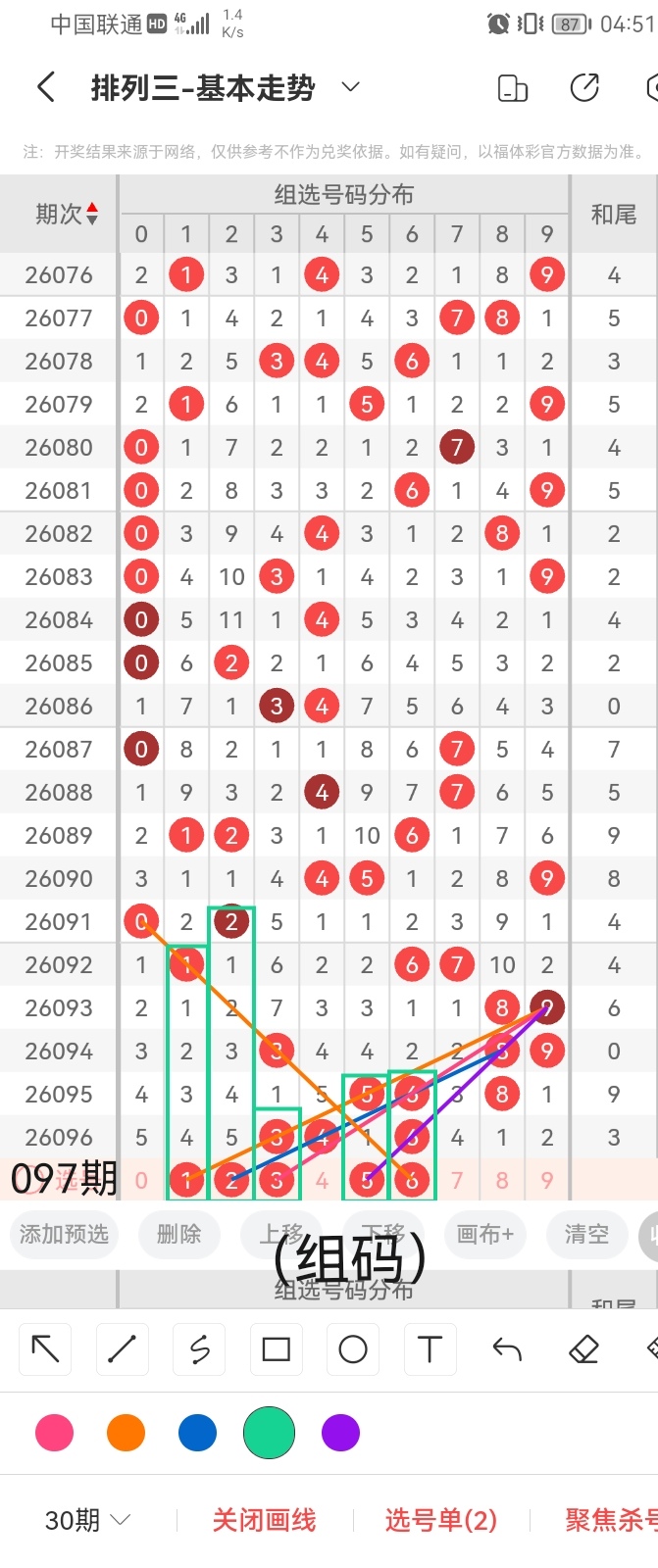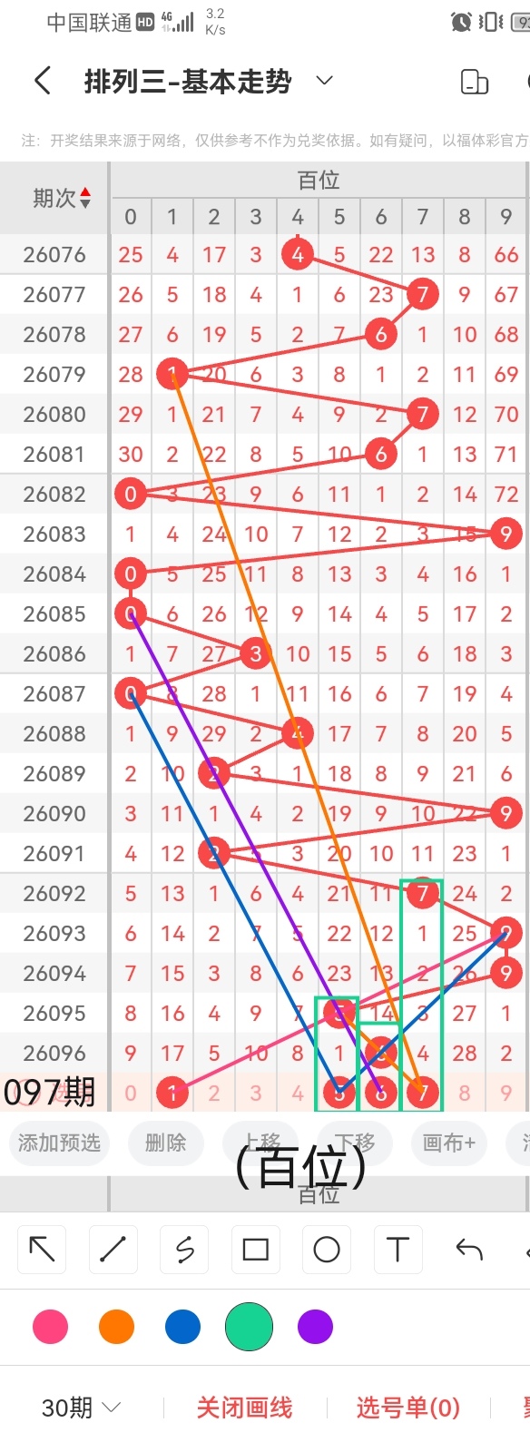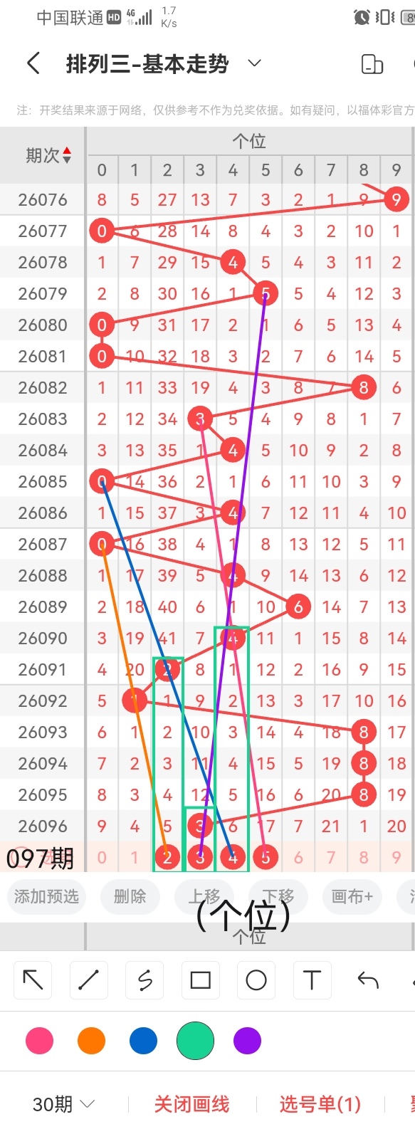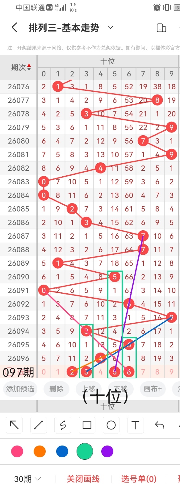 通过以上对上期的简单回顾,下面进入体彩排列三第2026097期(下面简称本期)的选号分析: