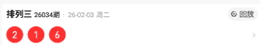 一、上期开奖解析(26034期开奖号:2 1 6)