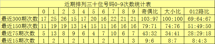 个位分析:最近300期奖号由冷到热表现为:922,624,026,129,5831,232,4733,339次,该位号码奇偶比为154:146,大小比为141:159012路比为111:95:94
