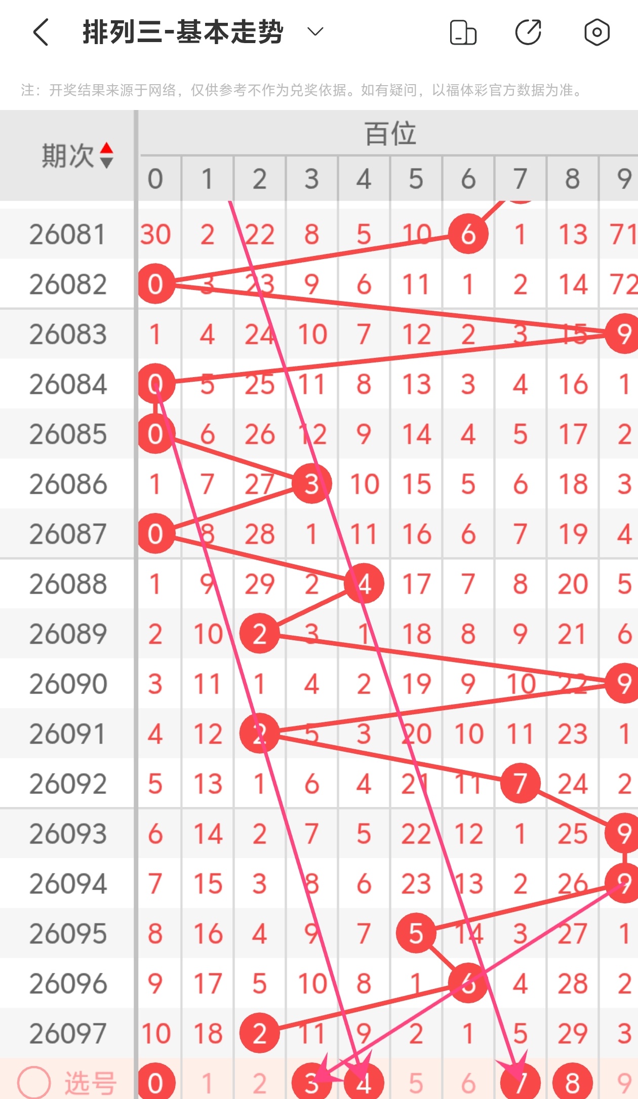 下面是体彩排列3的百位走势图分析