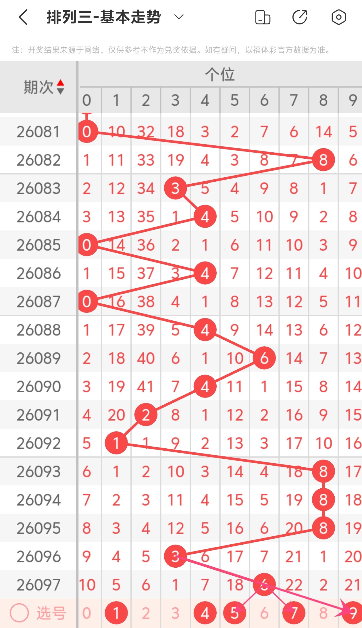 下面是体彩排列3的个位走势图分析