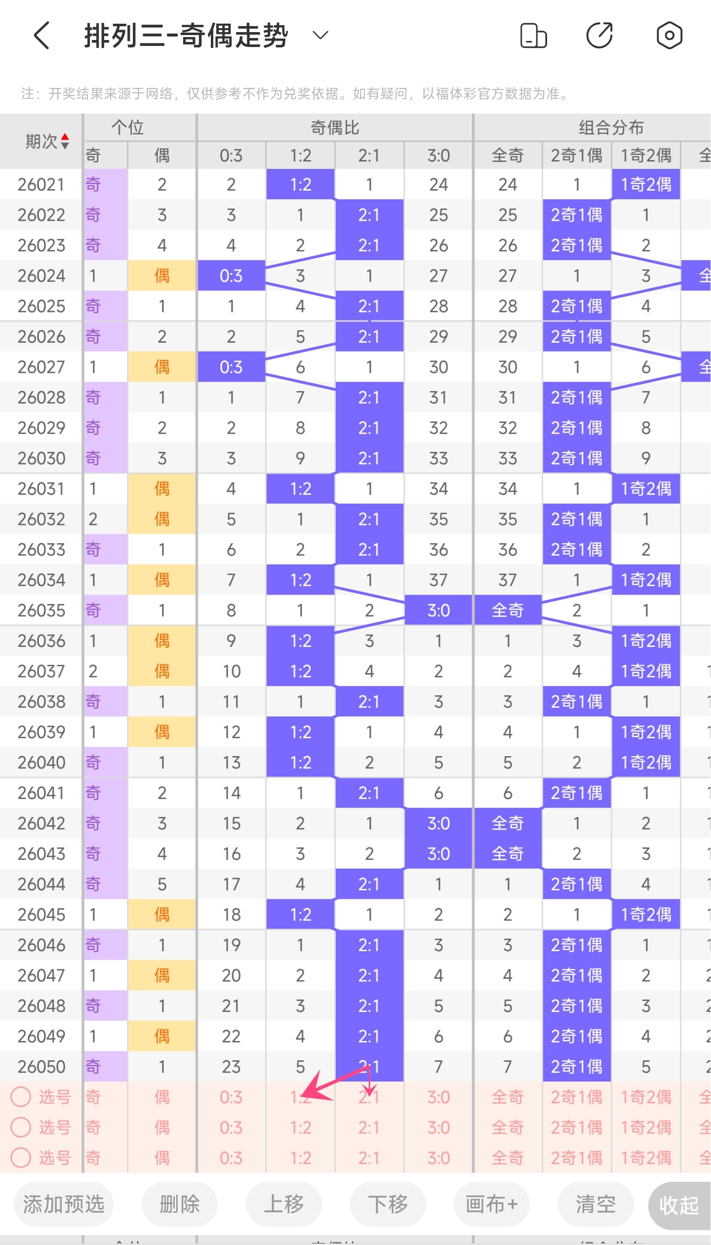 三、通过奇偶走势分析: