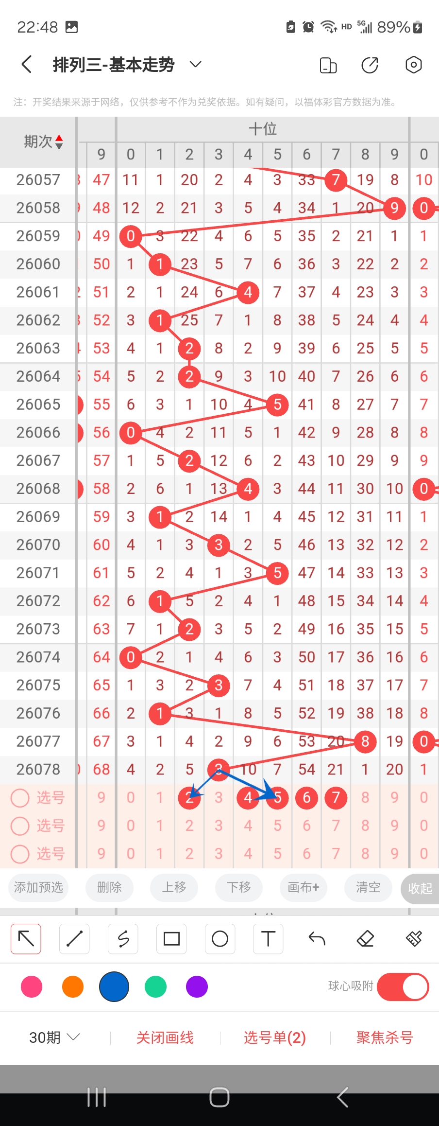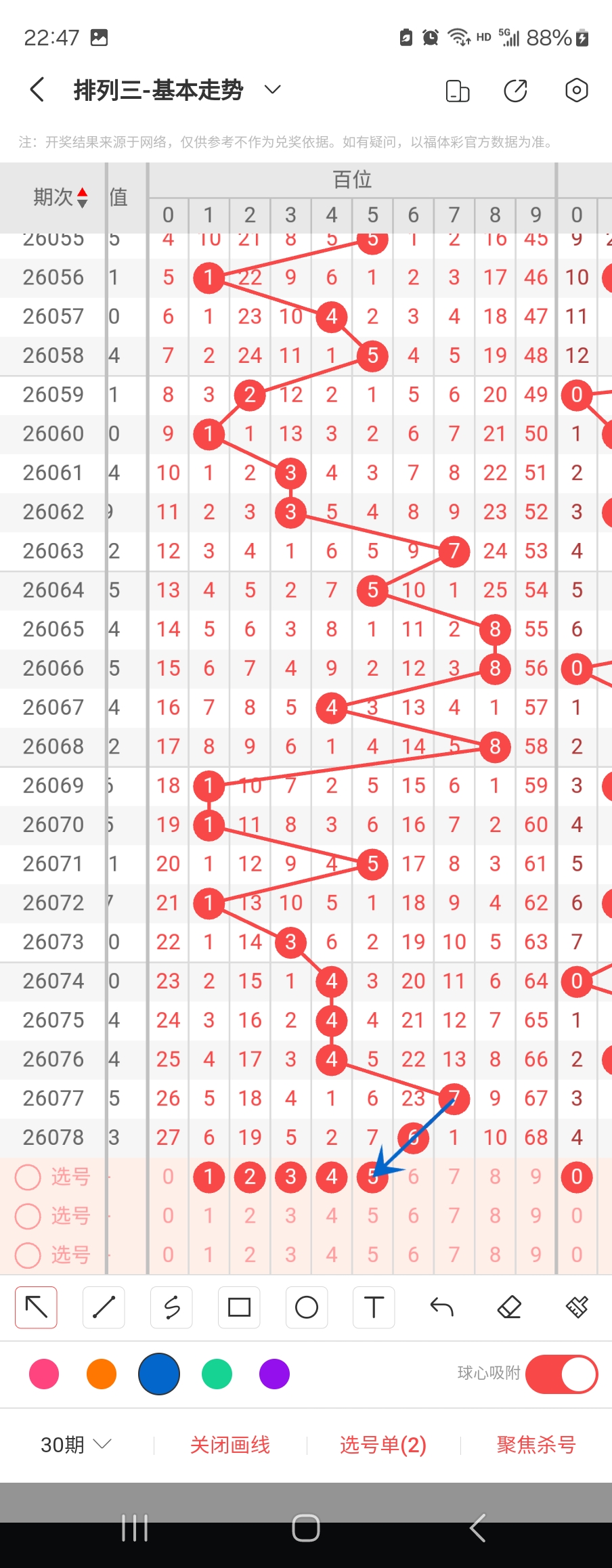 个位走势标注如下图;